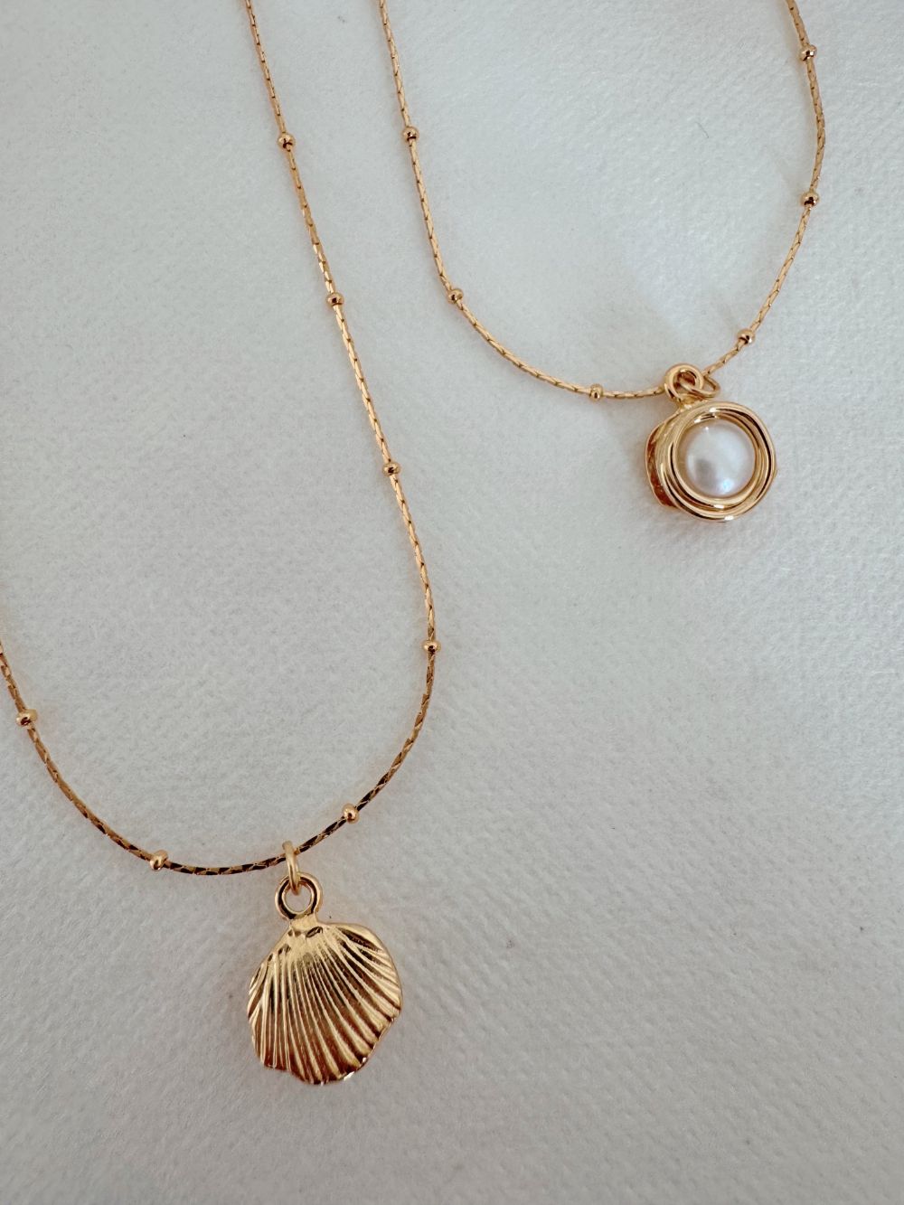 Natural pearl double sided pendant necklace – stainless steel gold plated (Natural pearls vary in shape & size/ have surface flaws)