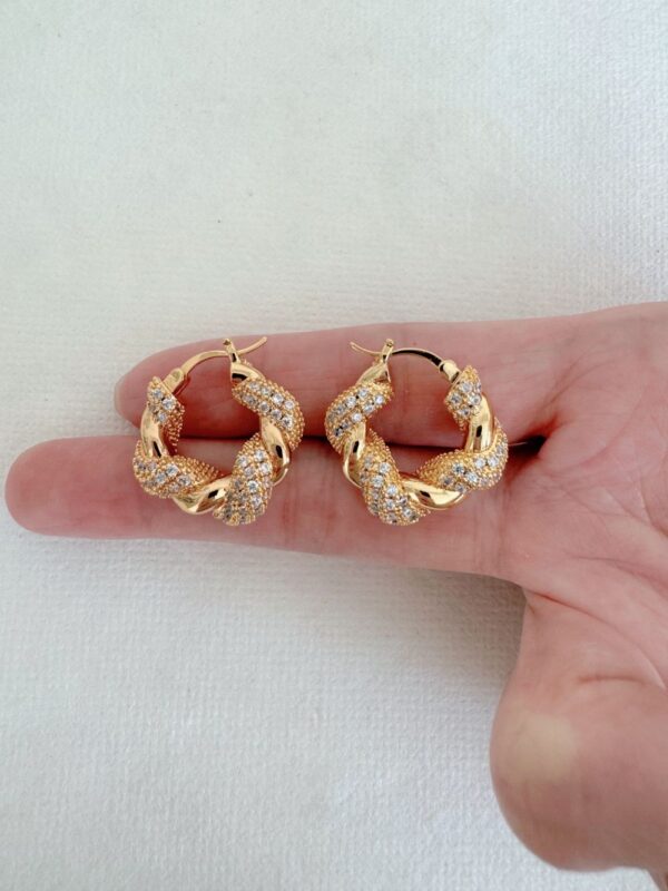 Twisted inlaid high quality zircon hoops – 18k gold plated